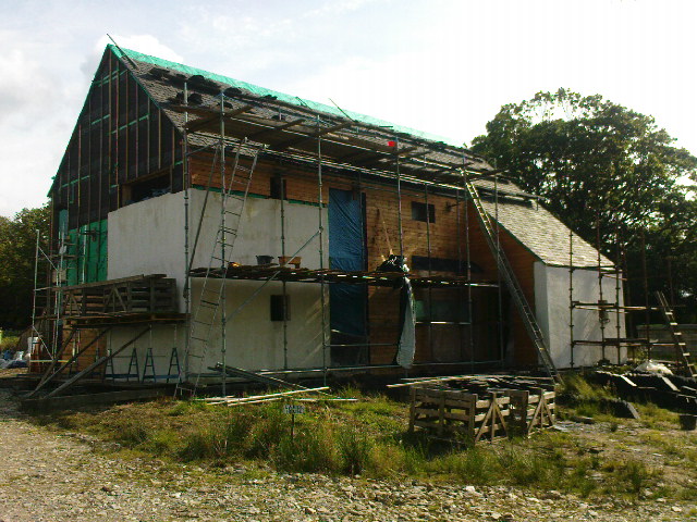 You might know it. School holidays and the weather has been much wetter. We have managed to finish the cladding on the north wall and have got the base coats of render on. What a difference! It really looks like a house.