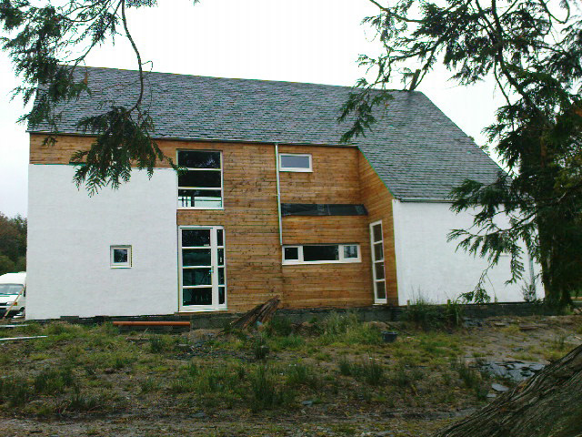 On the good days John is finishing off the cladding that he can reach round the windows. For the picture he has ‘photoshopped’ in the missing bit between the front door and the upstairs landing. Would that it were that easy in real life!