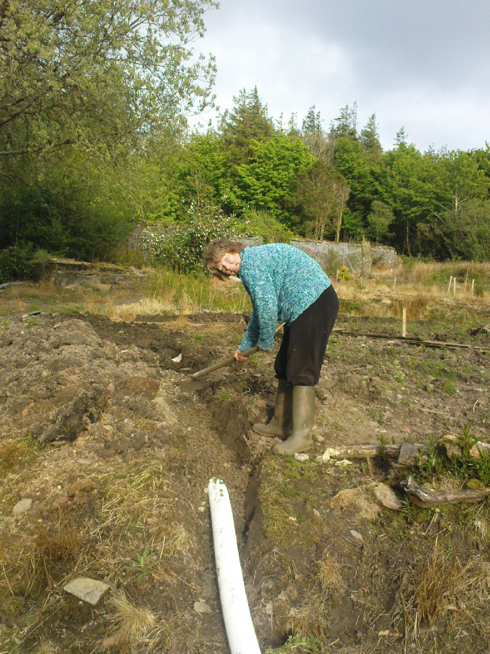 When the weather permits, John has been weeding the buttercups from the veg garden and he has made a start hand digging the drains. It will probably take all summer to complete but we only need a bit of it for a few peas and beans and last year’s sprouted potatoes.