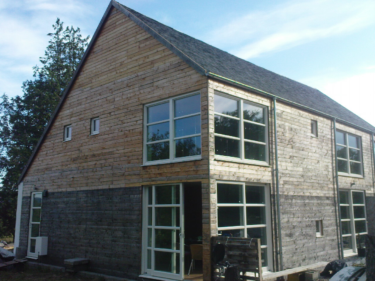 We’ve had a busy few weeks. Once the cladding arrived, John pushed on with the tip of the west gable (I couldn’t watch!) and finally got it finished together with all of the other bits and pieces such as the window masticing, the vent axia, (which couldn’t be reached with the scaffolding in place) not to mention the large barge boards.