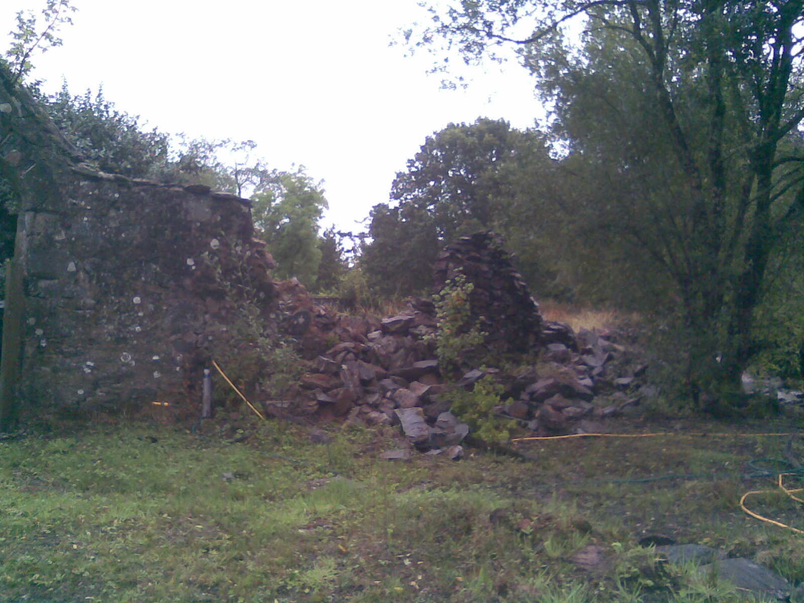 And speaking of building help. The stone wall has collapsed in two places. Amusingly, we think, the bit that Jo and Ste Shaw built has remained standing. It looks as though there may be some drainage needed in the walled garden, through and under the wall into our swale, but that’s something for when the new owner comes along.