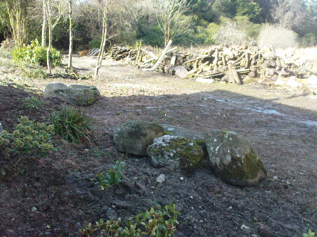 dsc01532.JPGWe looked out of the window one day to see Len with the tractor and trailer with three large standing stones. Needless to say the ground was frozen at the time and we couldn’t get them into their permanent positions, but he also brought some boulders for the front and, along with the skimmia cuttings which we hope will take, we are beginning to get a feel for the landscaping there.