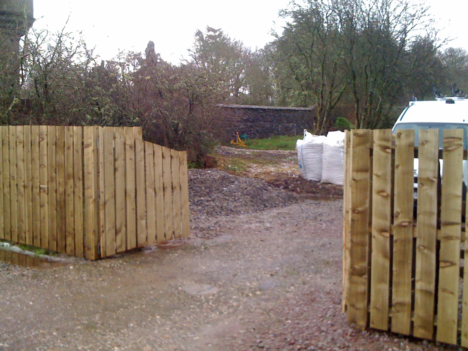Fraser finally decided that we’d waited long enough for the fencing materials and we now have the fence with double gates at the side of the house. It took a bit of time to work out the correct spacing on the boards to prevent them acting as big sails in high winds but luckily, I’d decided to screw them rather than nailing so it wasn’t too much work to adjust things after the first big blow of the autumn threatened to demolish my hard work. We have fencing for the veg garden and will block the deer entrances and exits to save the trees.