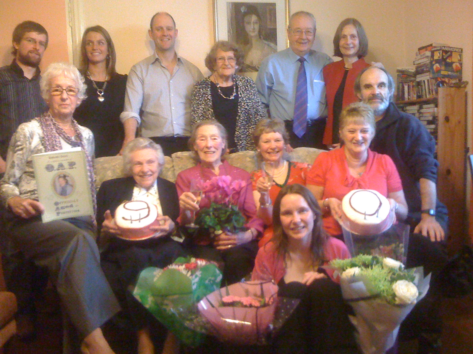 In the middle of the month, it was Margaret’s 90th and Suse’s 60th birthdays. Suse organised a “surprise ” party for her Mum and invited friends and relations. Emily and Richard did a fantastic job behind the scenes and the movie of John’s barber shop singers was a big hit, especially with the ladies present. Margaret had a good day but struggled a bit afterwards and needed another spell in The Victoria.