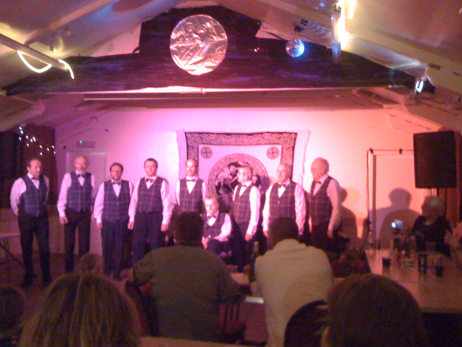 The Barber Shop have been “singing out” recently. Three times in one week! Emily and Richard braved the horrors of the A83 and joined us in Southend Village Hall for the first one. They said they enjoyed themselves but we wondered afterwards what they could possibly say to their friends and work colleagues when asked “What did you do at the weekend?” I was in church for the second time in 3 weeks for the second one, a carol service for Christian Aid. Suse says that only some of the congregation noticed that one of the Barbers was actually singing a different song at one point! Our Christmas party followed the final sing out at one of the old folks’ homes in Ardrishaig. We had the Bangladeshi restaurant to ourselves and I loved the bemused look on the waiter’s face as we belted out “Sentimental Journey”. Who would have thought it?