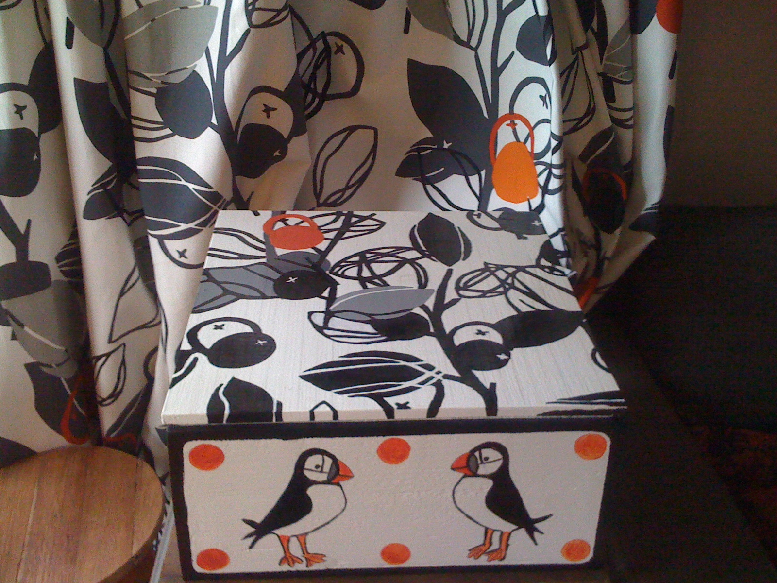 This was Suse’s 60th birthday present from me. It’s a sewing box and it’s spooky the numbers of times in a day you find yourself staring at the puffins. IKEA have a lot to answer for.