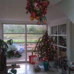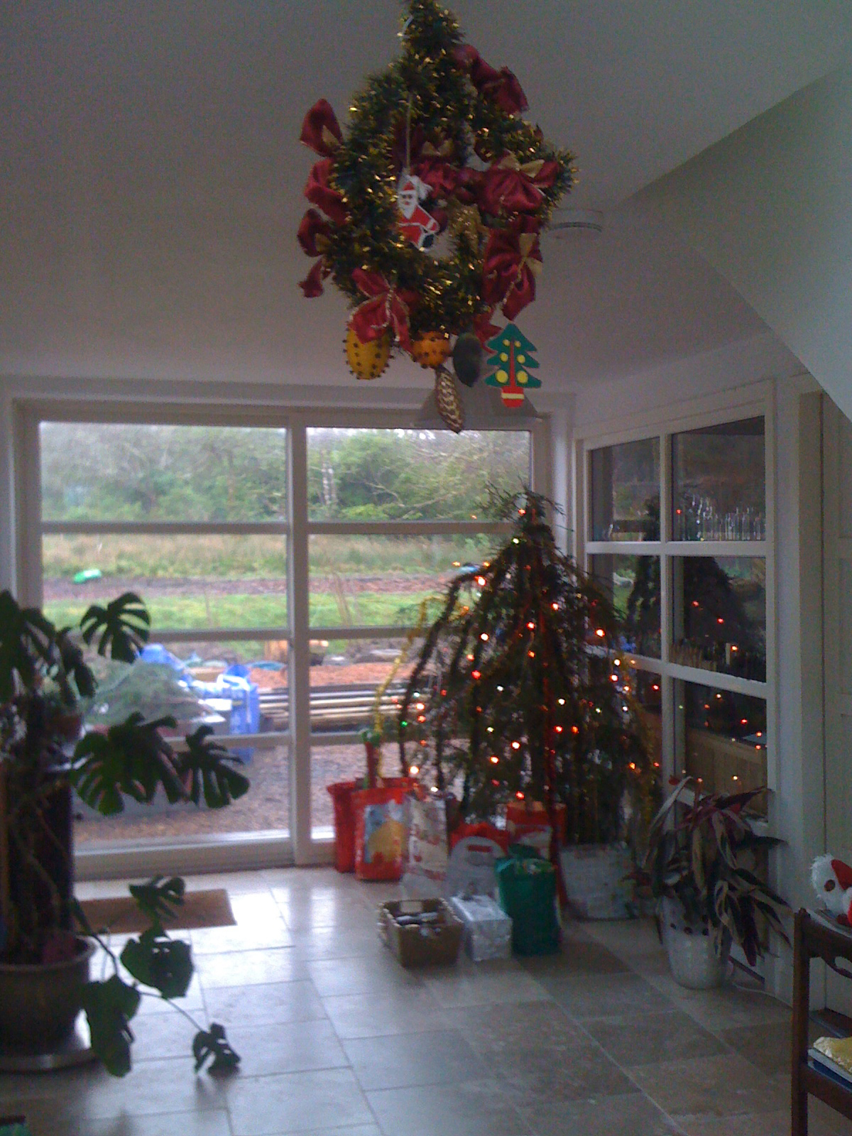 We’ve spent the last few days “rustling” our christmas tree ( we got the top of a small cedar that B’B had blown down and added some spare branches) and it’s now decorated and waiting for somebody other than the two of us to see it. Incidentally, I dragged the tree past the skeleton of the “family” christmas tree that we used for many years in Bathgate but which didn’t survive the transition to the west coast. Make what you want of that! We bought each other our Christmas presents in October when we went to see Bob Dylan in the Braehead Arena. Jo and John had bought tickets for us when we were in Melbourne so this was twice in a year. Unfortunately the acoustics in Glasgow were poor.