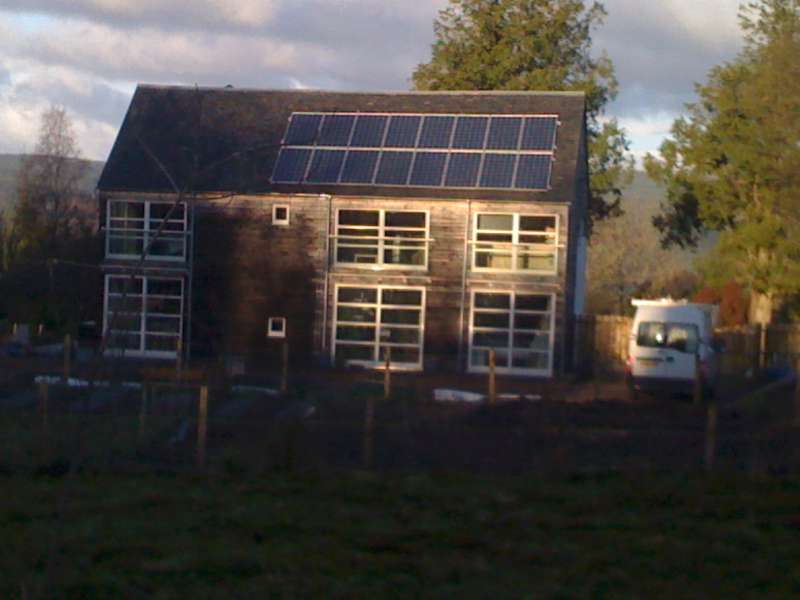The house build is of course finished, or so we thought. Then we were able to add some pv panels to the roof, prompted by the government’s Feed in Tariff Scheme. I have always been unhappy with small scale renewable energy schemes, believing that we should be concentrating on providing effective renewable energy to the grid. However, this just isn’t happening. Wind farms are proliferating but they are not efficient, especially when built in remote places and losing energy every mile they have to be taken to where they are used. So we decided to invest my pension in pv panels and we’ll see how that works out in due course. With the house finished we were able to turn our thoughts to furnishings and we commissioned a set of oak dining chairs from a local artist, and a fused glass panel for the stairway light. Both give us a lot of pleasure. Most of John’s work now focuses on the garden and when he does what he’s told, it’s great! The vegetable garden is rabbit-proofed and finally, the main garden is deer-proofed – although it took some destructive visits from Donny the Sheep before that finally happened. The raised flower beds with seat/walls were constructed in time for the Rubydo although the planting will need a while to mature. As John says, when he looks back on the garden we left at Ballencrieff, which was also started from scratch, he realises that it will come eventually but we will just have to be patient. In common with everyone else, we have found it a difficult year for vegetable and fruit crops, but with mulches, seaweed and digging, things can only get better!