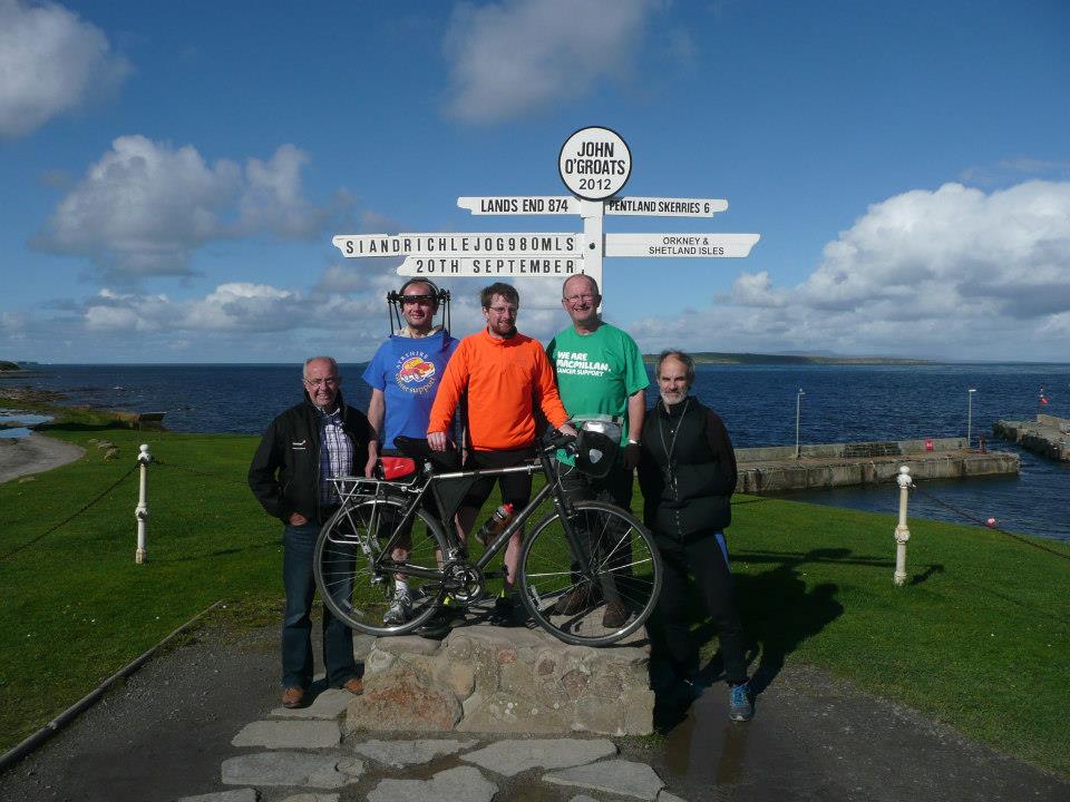 Also in September, Richard found himself doing a solo LEJOG. His best man Simon had wanted to do the trip to raise funds for cancer charities after his wife had breast cancer, but while out training he hit a sheep, went over the handlebars and broke his jaw and neck. He is fine now, but was in no condition to cycle 900 or so miles so. Richard couldn’t postpone the trip until Spring, so he had to go it alone. His Dad Steve provided car support through England, then John took the campervan through Scotland where cafes are a bit farther spaced and it all went on schedule with that and other activities raising over £6000. Well done that man!