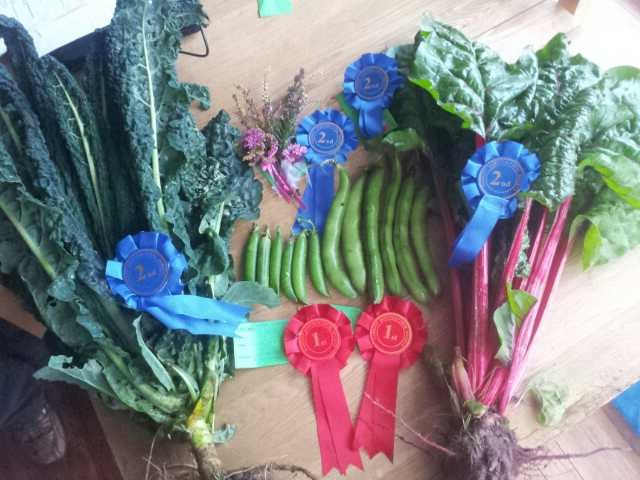 Suse’s entries into the Tarbert Flower and Produce Show resulted in 2 firsts and 4 seconds. She turned up at the Village Hall on the Friday evening with a carrier bag full of veg which she tipped on a table and said, “What do I do with these?” In no time, three gentlemen were telling her!