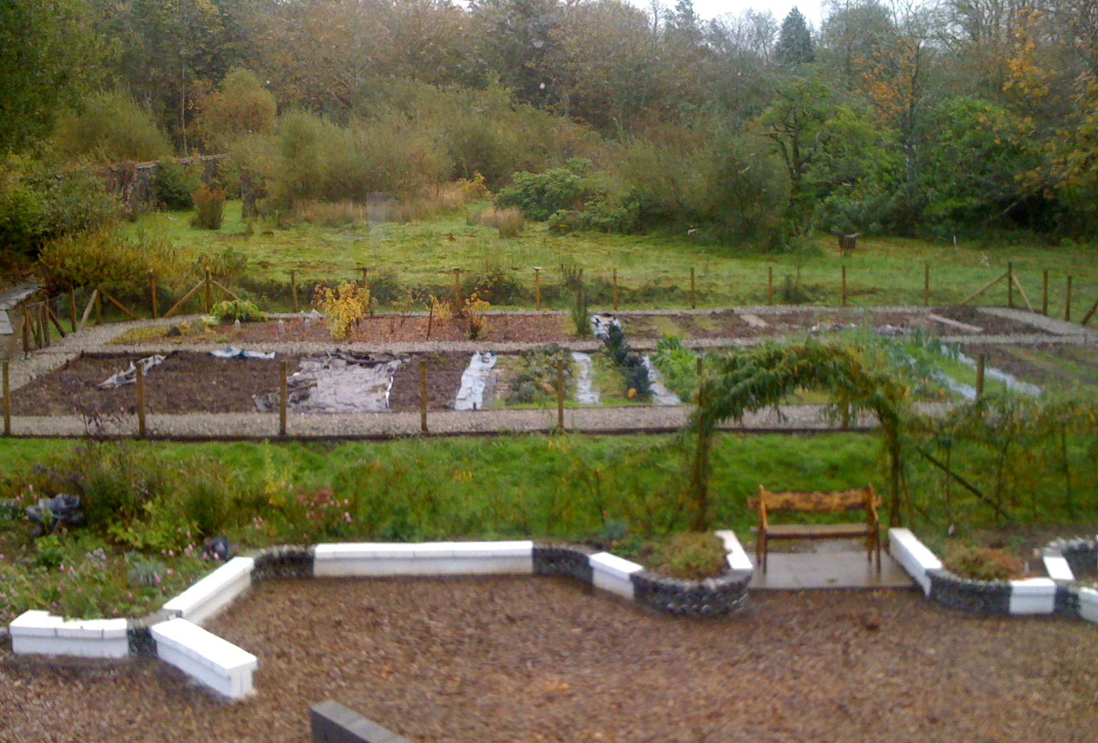 Suse finally had her way and we now have more stone paths in the vegetable garden. I think it was Emily and Richard’s offer of help that tipped the balance but with memories of the last shovelling marathon, it was with some trepidation that I dug out the telephone number for McNaughtan’s and arranged for a lorry load of type 1. In the past, Steff had delivered stone using a 6 wheeler but he had moved on and the smaller vehicle wasn’t available, so it was back to footering about with an 8 wheeler. Anyway, the stone was duly dumped and work commenced. We’d decided to lift the turf around the edge of the plots and use it to level low spots throughout the garden and to put in timber edging. We also put in some drainage that wasn’t installed first time around. So progress was quite slow. We got there in the end and there is some stone and membrane left so we’ll peck away at the other garden paths, weather permitting. We also had gravel delivered for the front drive so the shovelling will continue for a while yet.