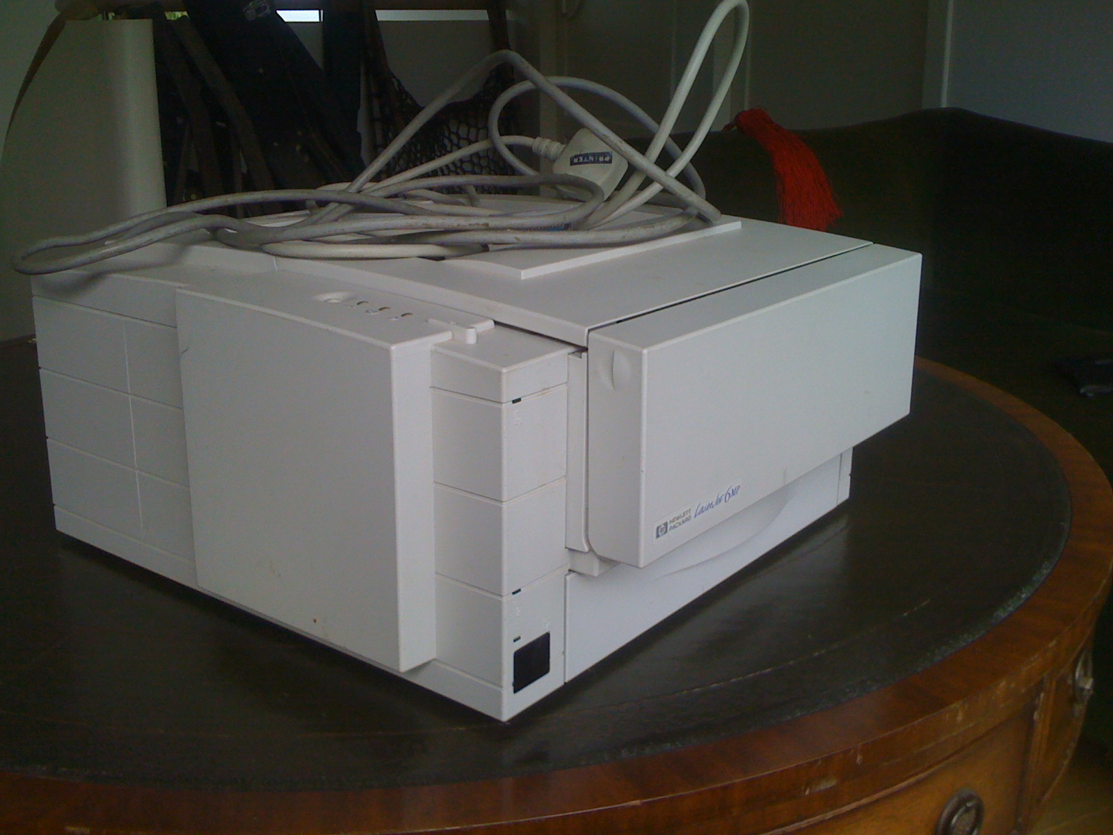 We finally had to call it a day on our trusty HP Laserjet 6MP printer. We bought it in November 1996 and it has run without too much attention since. Recently, large black bands started appearing across prints with none of the tried and trusted fixes (shaking the cartridges, cleaning rollers etc.) having any effect. HP didn’t believe the serial number when I phoned up but once they’d checked, they quickly said they no longer could support it; that it didn’t owe me anything and would I like to buy another one? I thought about it but we don’t need anything quite so good these days and we settled for a £50, 600 dpi Samsung laser printer. How prices have tumbled!