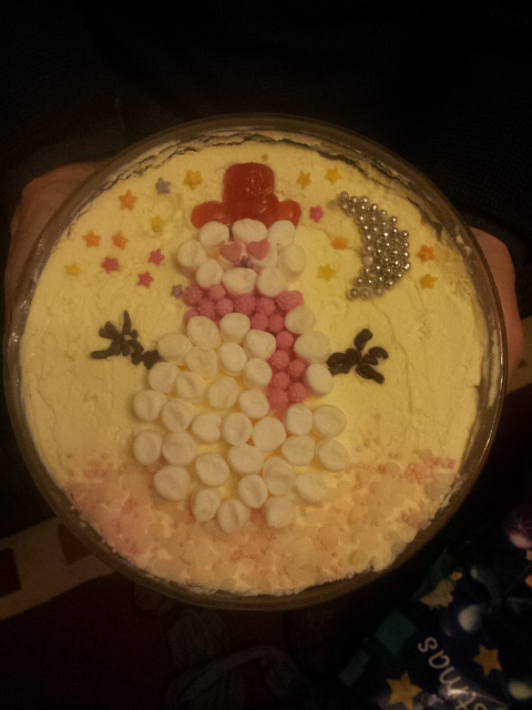 Emily's magnificent Christmas trifle which tasted as good as it looked.