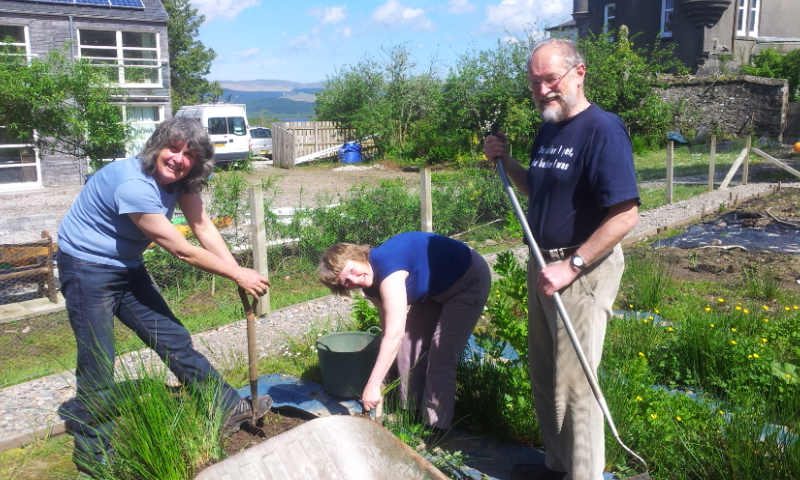 Andrew and Mary Carruthers visited us en route from Alford to Ardnamurchan. Work that one out. They have finished the renovation of the old school building which they’ve owned for many years and seemed very pleased with the outcome. We indulged Andrew by visiting the pre-historic sites in Kilmartin and had a most pleasant meal in the Museum tearoom. Mary is a gardener and it was her idea to work in the veg plot- honest.