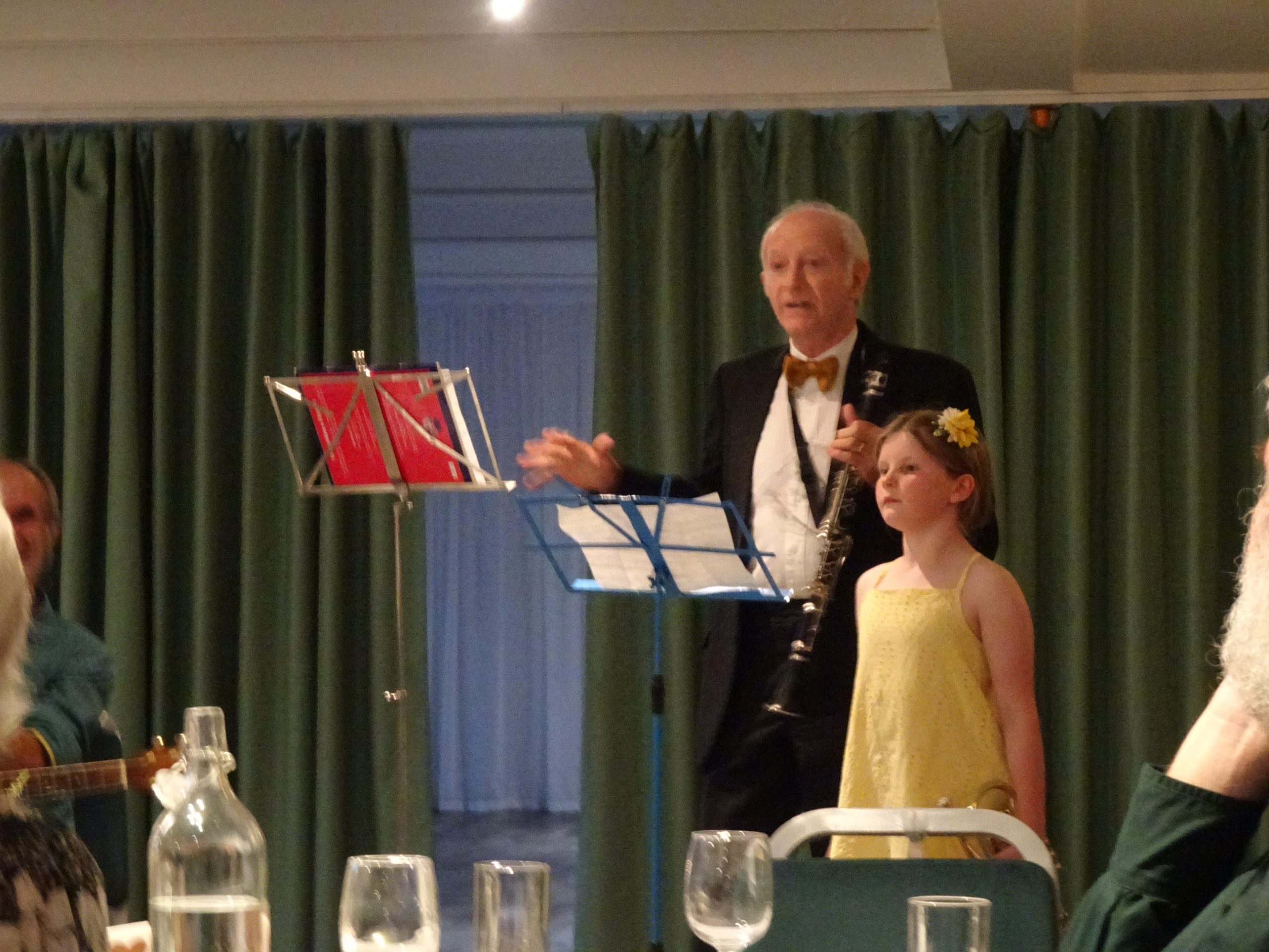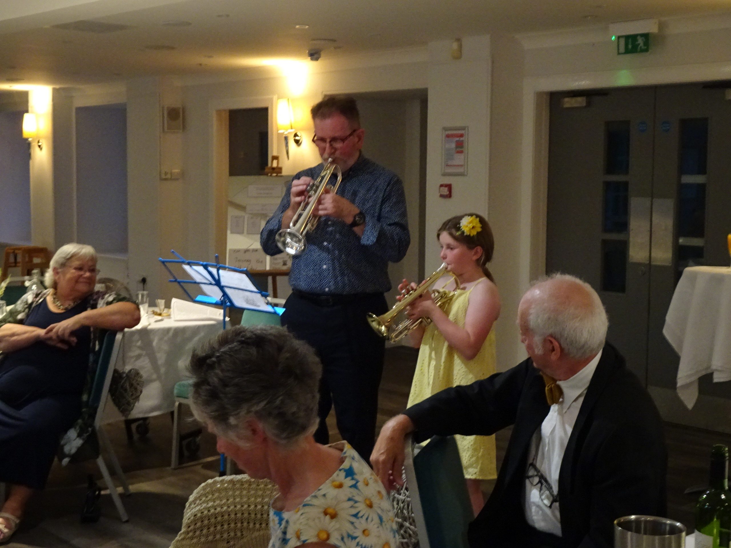 A surprise (for Jo) performance of Happy Birthday by Caitlin on the cornet and Kevin on the trumpet with a cake and candle was lovely. Johnny performed some magic tricks and Neil, John and Caitlin performed Stranglers in the Night. Jo and Emily said some very kind things about us and Nigel, one of only two people who attended in 1972, again took the photographs .