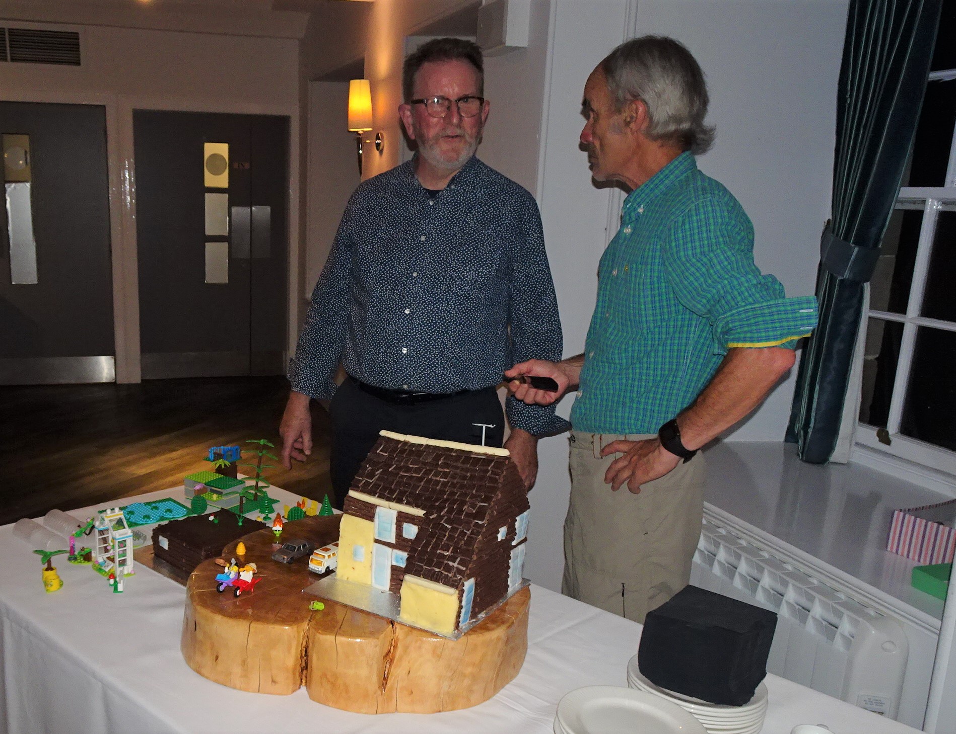 A highlight of the evening was the special cake that the Birches had prepared, a replica of Larick House with gluten free garage, lego monkey puzzle, poly tunnels and other details.