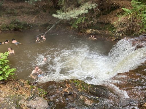 After Rotorua Parkrun we motored to Taupo via Kerosene Creek. Here, the hot water river bathing was a lot less faff than a hot tub and absolutely delightful, although Suse’s white top will never recover. The German couple who seemed to be re-creating the scene from “The Day of The Jackal” movie where Edward Fox re-sprays his car in the middle of a forest were intriguing.