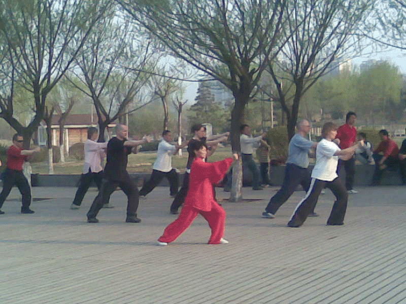 Opposite the hotel there was a park and I went there to practice tai chi in the mornings before breakfast. It was full of other people doing tai chi, qi kong and all sorts of exercises, including ballroom dancing. Once the others arrived we got down to serious training with Professor Li of the Deyin Institute in Beijing. We also had time off to visit various places, the Great Wall, jade factory, silk factory Forbidden City and Tiananmen Square.